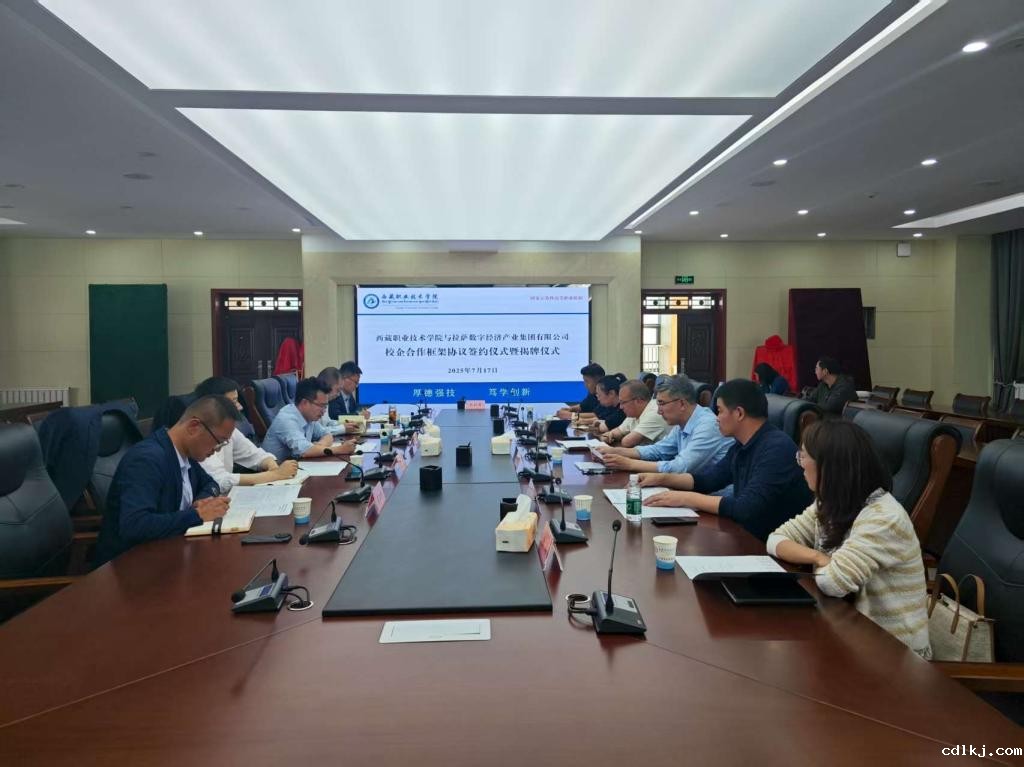 近日,学校与拉萨数字经济产业集团有限公司校企合作框架协议签约暨揭牌仪式在西校区信息楼5楼中会议室隆重举行。校党委副书记、校长陈飞,拉萨数字经济产业集团有限公司党委书记、董事长雷青松出席会议,会议由校党委委员、副校长徐斌主持。