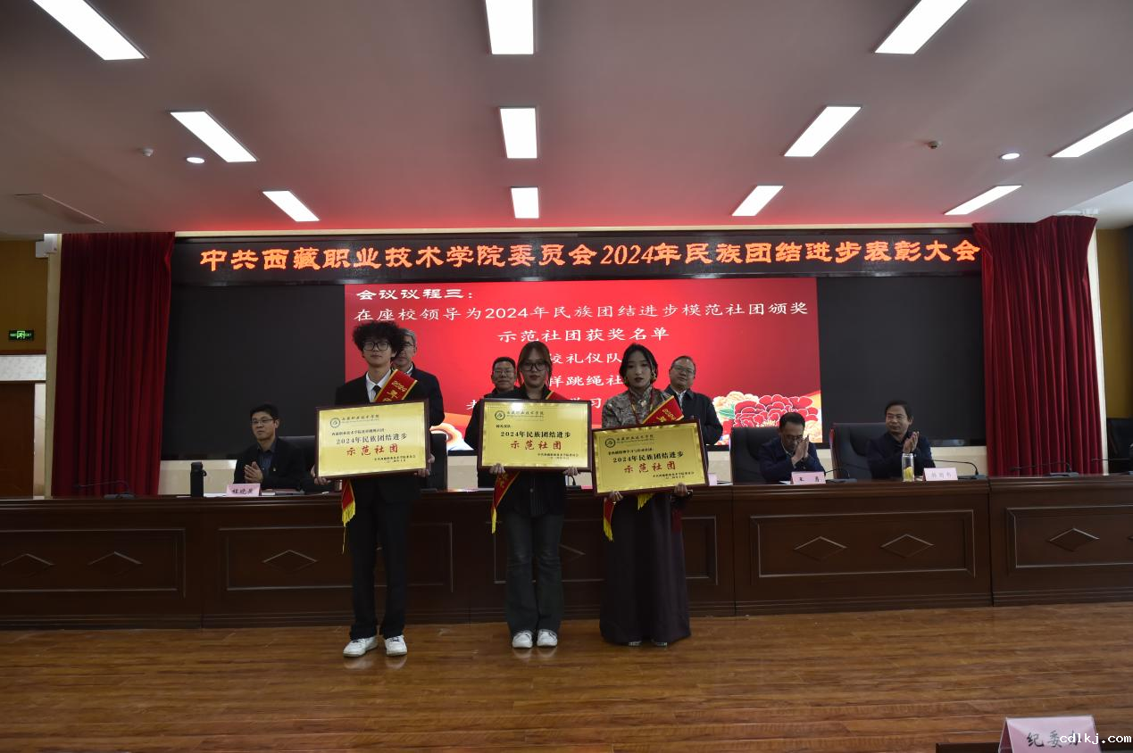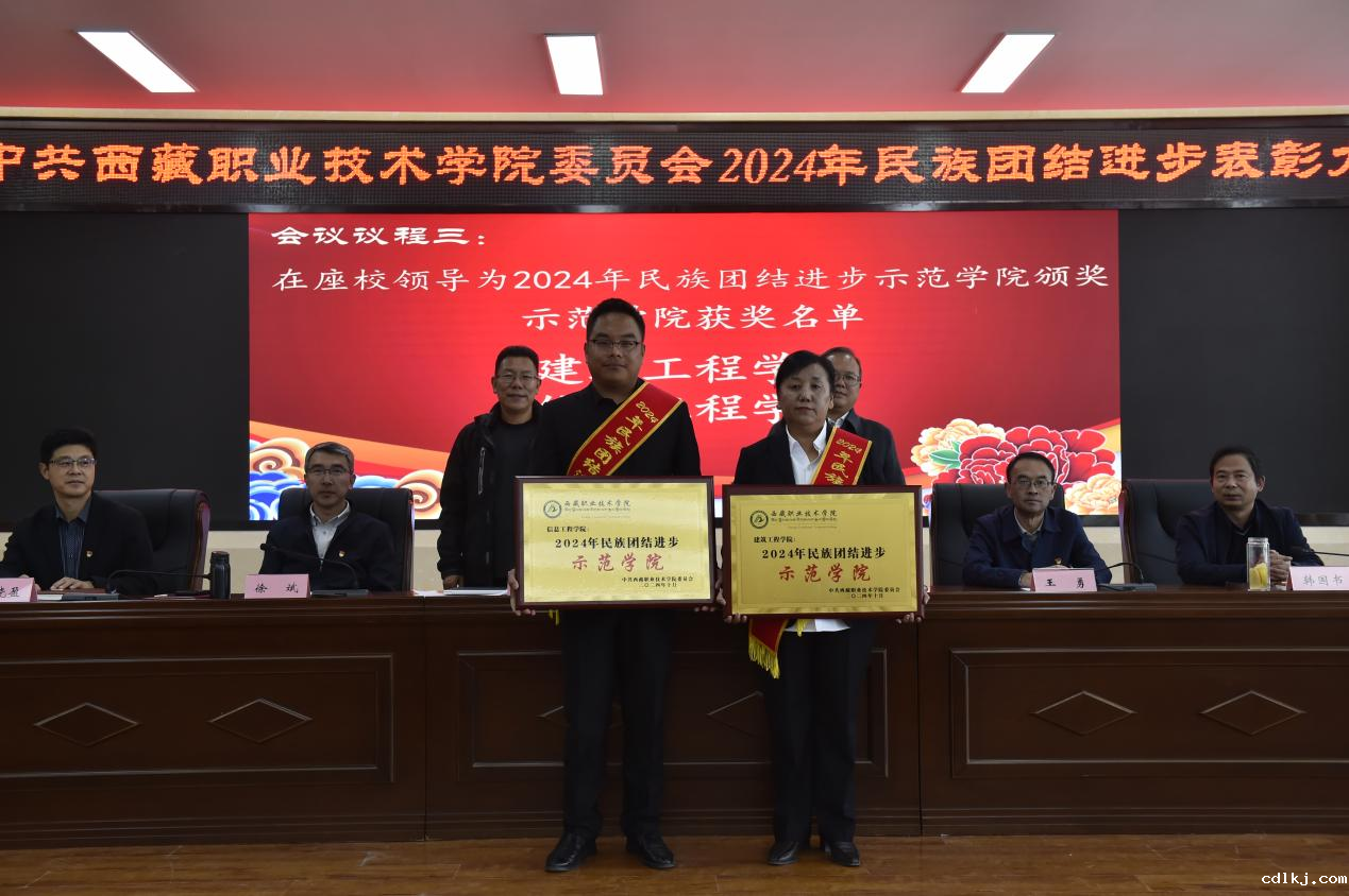 图为在座院领导为民族团结进步示范班级代表颁奖