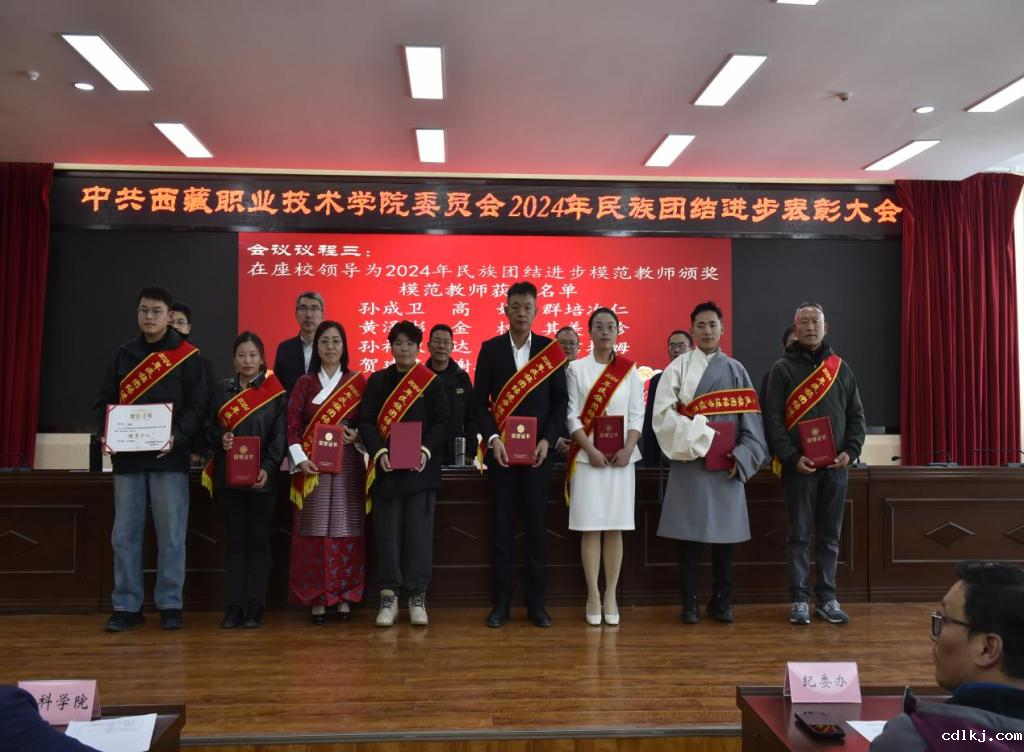 图为在座院领导为民族团结进步模范教师代表颁奖